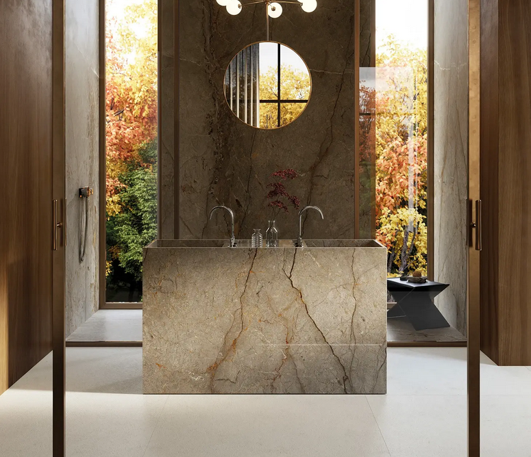 Light-gray marble with black-brown accents—tranquil, sophisticated, modern.