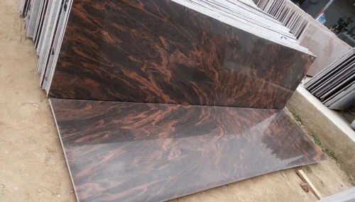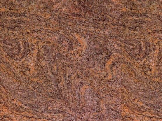 Bash Paradiso features a warm tan background layered with flowing grey, violet, brown and black swirls. Its expressive movement and natural coloring give it a unique appeal for statement surfaces.