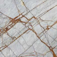 Pearl-gray marble with garnet-red crystalline veins—dramatically luxurious.