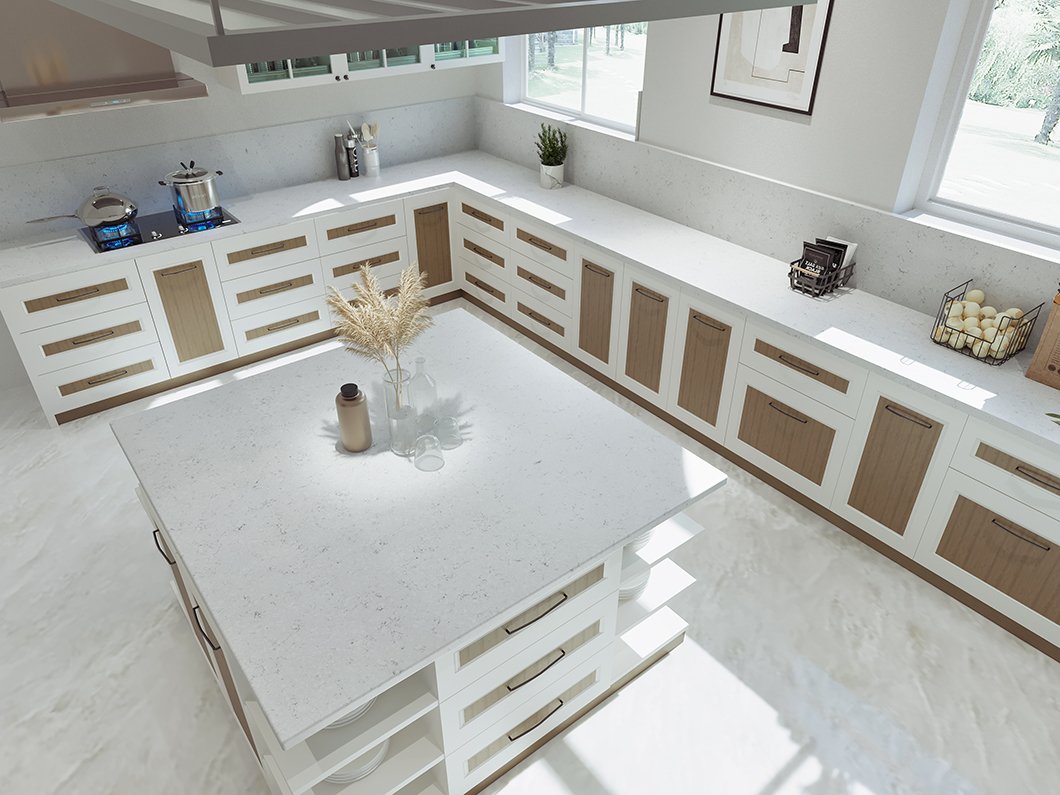 To keep your Gallium clean, beautiful, and well-maintained, clean it regularly with warm water and a soft cloth or sponge, and use gentle liquid cleaners like dish soap or Simple Green for tougher spots. Wipe spills promptly—especially from tea, coffee, wine, or turmeric—to avoid staining, particularly on lighter-colored surfaces. Sanitize occasionally with 70% isopropyl alcohol or a mild disinfectant spray to keep bacteria at bay. Avoid placing hot pans directly on the surface and don’t cut directly on the countertop to prevent cracks and dull knives. Never use sealants, abrasive scrubs, or harsh chemicals, as they can damage the non-porous finish of quartz.