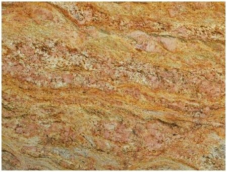 Golden-yellow with grey, pink, white streaks—rich, luminous luxury stone.