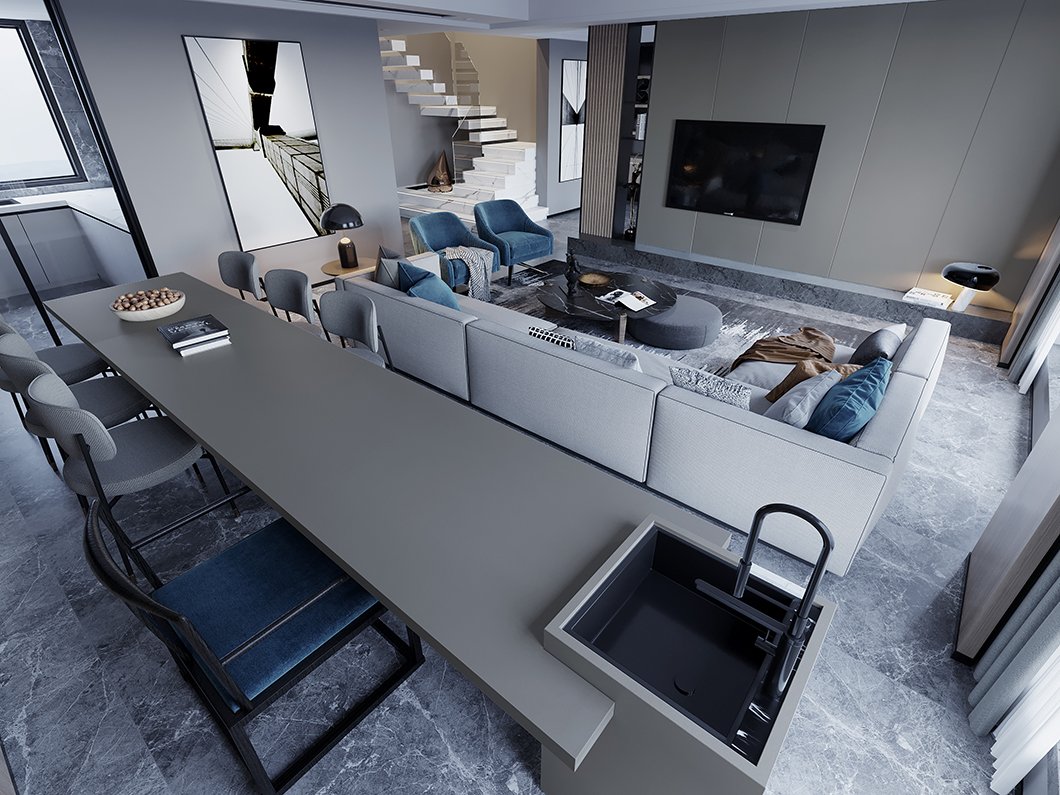Pure Gray Quartz features a consistent mid-gray tone enhanced with subtle fine- grain detail, offering understated elegance. Its uniform finish supports cohesion across large surfaces without drawing attention. Engineered quartz ensures top-tier resistance to heat, stains, scratches, and impact. Ideal for those seeking a reliable and adaptable gray surface that integrates smoothly with diverse design schemes while delivering functional resilience.