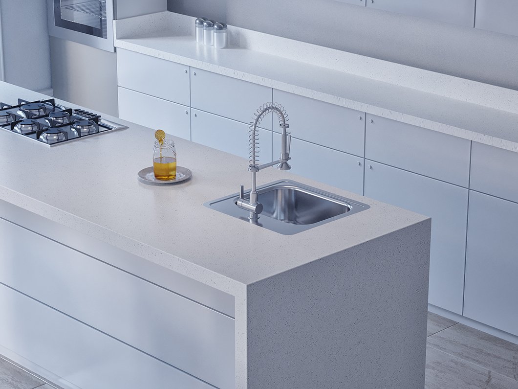 As endearingly peaceful as a white winter scenery, Specta’s Starry White Quartz is a stunning portrait of pure-white base with white speckles that adds interest and appeal to any environment. For kitchens, bathrooms, and wherever you wish to bring a touch of beauty, this premium quartz is a great choice. For busy kitchens and baths, white quartz countertops are a great choice. This durable, low-maintenance, stain-resistant quartz is also recommended as ideal for backsplashes or accent walls, in both commercial and residential buildings.